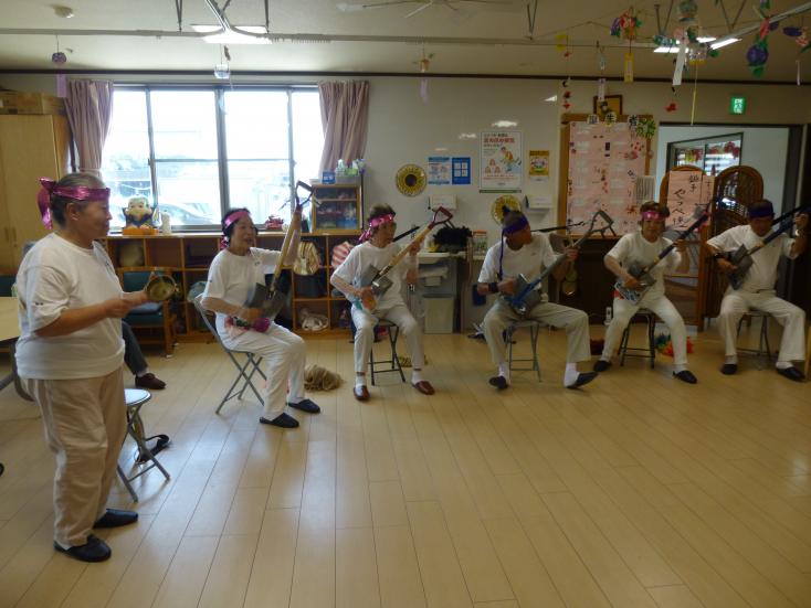元気な仲間では、心身ともに活発で健やかでいるための様々なレクリエーション活動を提供しています。季節のイベントやお祭り、外出イベントなど楽しみを提供しています。どんな方でもできる様なレクレーションを行っておりますので無理なく楽しむことができます。また、地域のボランティアの方にお越しいただき大正琴演奏、スコップ三味線やカラオケなど。これらの活動を通じて、地域の方々との交流や日常の中に楽しみや刺激を取り入れ、心の健康も大切にしています。
